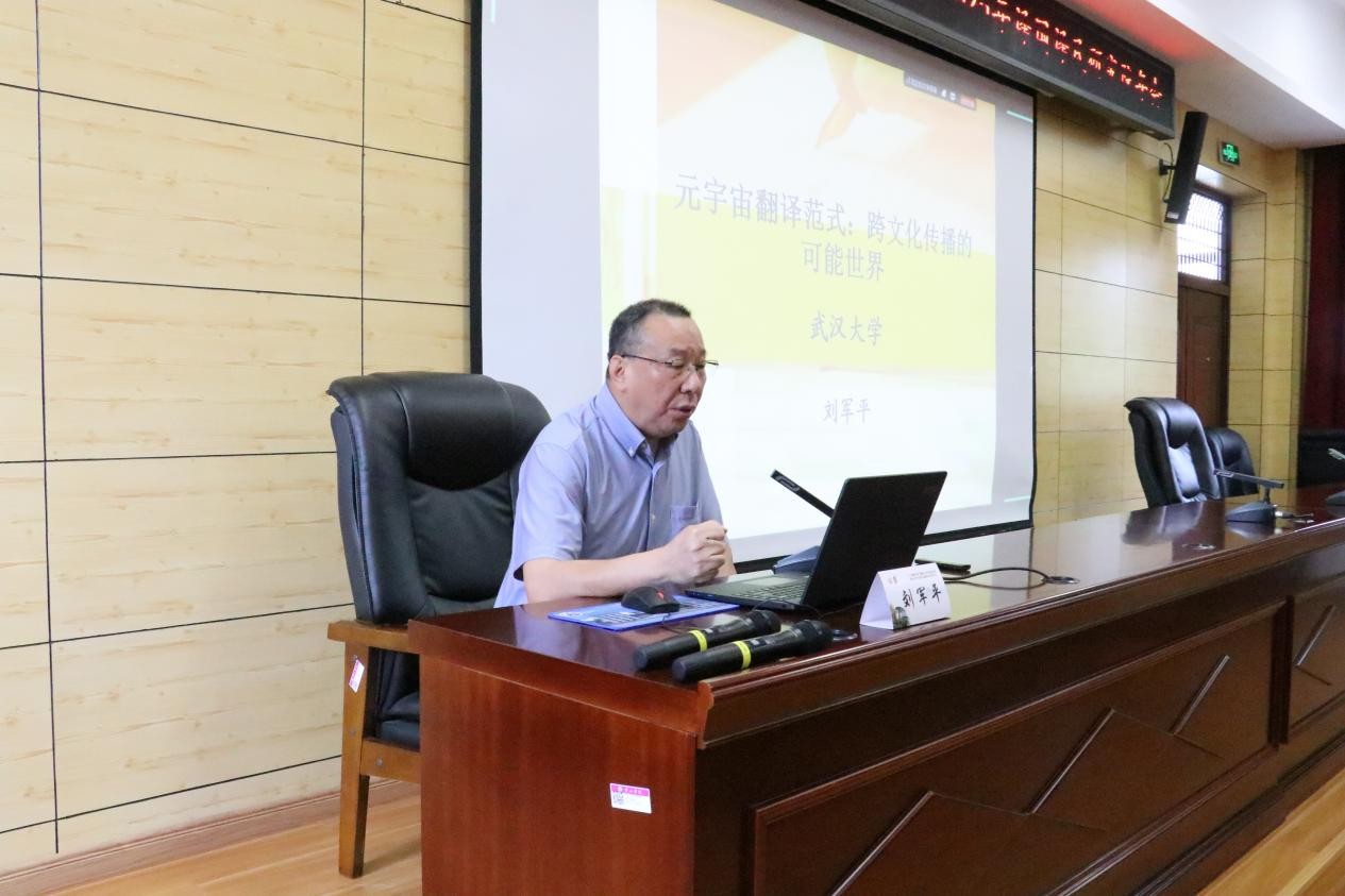 开幕式后,共举行了四场主旨报告,分别是《人工智能背景下翻译人才培养:问题与前景》(上海外国语大学董事长助理、上海市科技翻译学会会长胡开宝教授)、《元宇宙翻译范式:跨文化传播的可能世界》(武汉大学外国语言文学公司、湖北省翻译工作者协会会长刘军平教授)、《AI的翻译限度与翻译人才培养再思考》(广东外语外贸大学、广东省翻译协会会长王东风教授)、《人工智能背景下的翻译能力重构》(《上海翻译》主编、上海大学傅敬民教授)。《外语电化教学》常务副主编胡加圣、《中国外语》副主编常少华相继主持主旨报告并作点评。