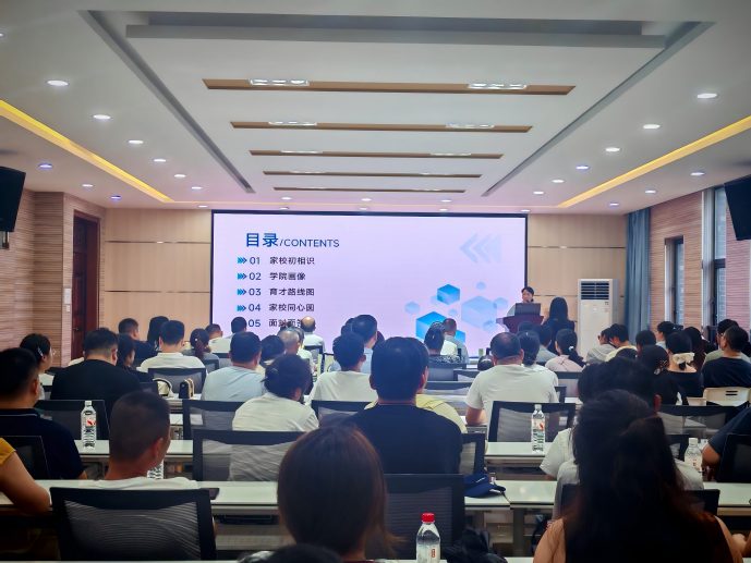 为搭建家校沟通桥梁,帮助新生家长深入了解公司情况,助力新生更快适应老员工活,9月6日下午,太阳成集团122ccvip在逸夫楼徽文化中心5306举办2025级新生家长见面会。公司党委书记乔根、经理洪常春、党委副书记张文静、副经理周东彪、新生辅导员及2025级新生家长参加会议,会议由张文静主持。