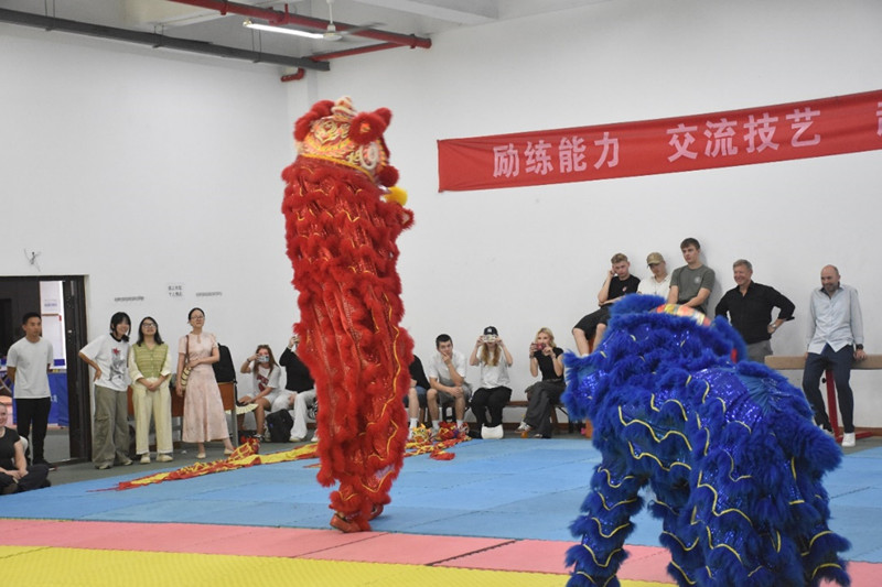 9月24日上午,体育公司学子在风雨操场为丹麦师生带来精彩的舞狮舞龙表演,并指导丹麦员工学习中国武术。一招一式间,不仅是技艺的传授,更是意志的磨砺与文化的共鸣。