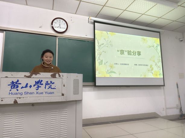 22级英语专业鲍京京以“‘京’验分享”为主题,展示了个人在英语专业领域的各类证书与荣誉,彰显专业实力。随后,她围绕英语导游证备考,从报名流程、考试科目、备考策略等方面进行详细讲解,为有相关职业规划需求的员工提供了清晰的备考路径。