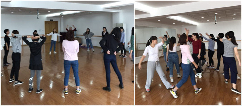 活动以即兴舞动、团体舞动、镜中人生、手语舞蹈等为主要方式,在指导老师的带领下,久坐案头、长期站立的员工们纷纷“起舞”,舒展压抑已久的四肢关节,跟同学们友好互动。同学们充分感知身体各部分后,身心连接,触碰内心,从而意识到身心之间的互惠关系,探索内在的资源,激发内在的潜能;获得更赋创造性的自我表达,具备更多的可能性;学会更好地与他人交往,更好地适应环境;最终实现身心和谐,健康学习。