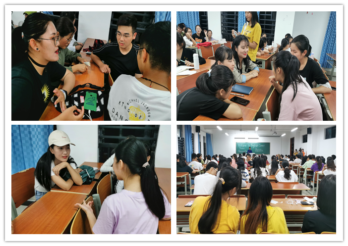 此项活动在太阳成集团122ccvip志愿者的引导下分项开展。在英文小游戏的热身活动后,大家以“祖国昨天和今天”、“明确目标,不忘初心”为话题分组开展英文讨论。最后答疑解惑环节中,老生为大一新生提出的各类问题进行答疑解惑。活动开始时,该院志愿者对本期活动主题以及注意事项进行详细介绍。随后志愿者引导参与者进行分组交流讨论。现场气氛活跃,活动持续了一个多小时,参与者表示对此活动受益匪浅。19级的丁晴同学说:“英语角提供了一个让我们大胆开口说英语、提升口语水平的平台,也能认识很多新朋友,志愿者今天一直在耐心的为我们答疑解惑,我收获满满。”19级的储巧珍同学也表示,英语角的内容丰富多彩,本期主题更让她思考什么是青年员工的初心,让她受益匪浅。