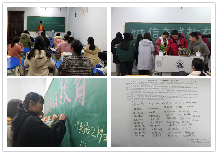 活动形式多样,内容丰富。有的团支部组织学习《员工手册》、有的支部开展“诚信考试之我见”的讨论分享会,有的支部组织开展诚信考试宣誓活动,有的支部组织诚信考试承诺签名活动。17日语班李乐园说:“期末考试在即,我们应自觉遵守作息制度,合理安排复习时间。做到早睡早起、规律生活、稳扎稳打、循序渐进,以饱满的精神和昂扬的斗志做好期末考试准备。”19英语4班张纪龙说:“诚信是做人之本。我们要从自己做起,从现在做起,充分利用复习时间,系统复习各门课程,坚决杜绝懒散慵懒,端正态度对待每一场考试,诚信的备考。”