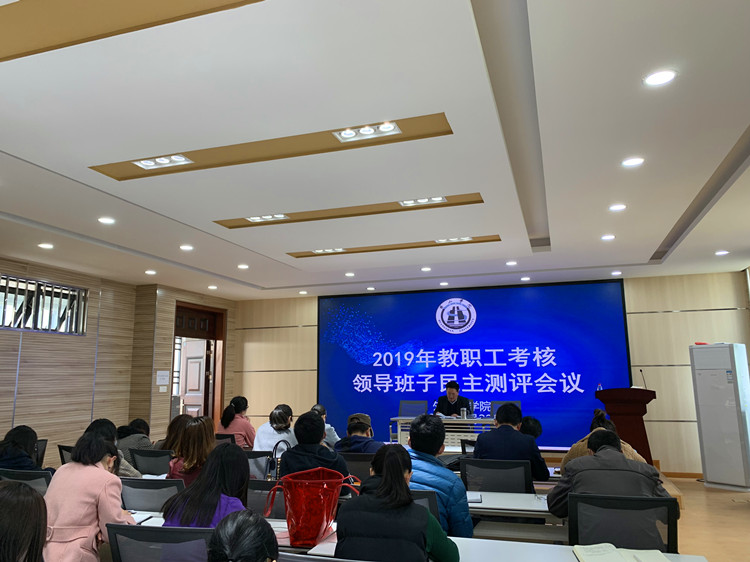 4月22日,太阳成集团122ccvip于逸夫综合楼5306徽文化传播中心召开2019年教职工考核及领导班子述职民主评议会。校考核组成员唐莹莹及全体教职工参加会议,会议由分党委书记黄先进主持。