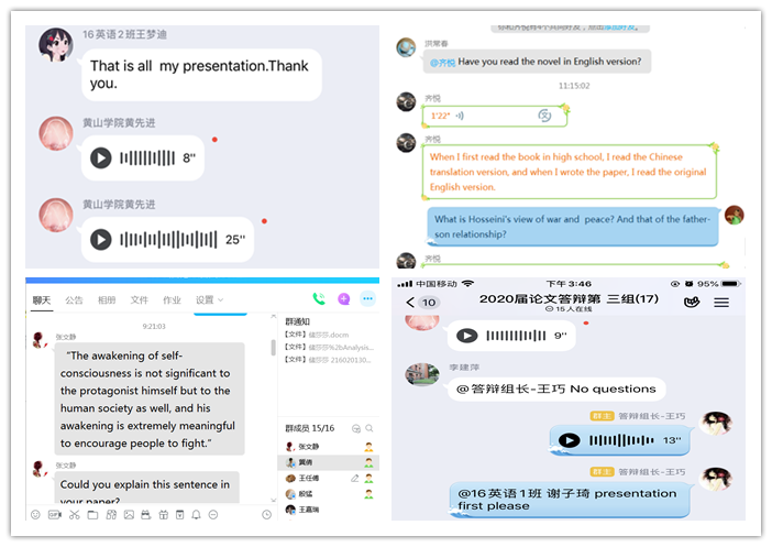 答辩员工以电子文档和语音的形式,在线上向答辩组教师提供答辩陈述,简要介绍论文的研究价值、研究目的、研究方法、中心论点以及创新之处等,并回答由答辩组教师提出的问题。答辩教师根据员工的论文质量、答辩陈述和回答问题的情况打分,并就员工论文定稿中存在的各种不足之处,对员工进行进一步指导。整个答辩过程紧张、有序,效果良好。毕业生们均表示,答辩过程是对自己毕业论文的再审视,对自己论文写作能力、外语应用能力的再打磨、再提升。