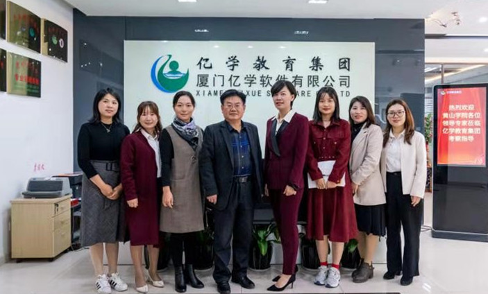 福建亿学教育科技集团专注于高校智能实践教学领域的信息技术研究与应用,打造了一个融合员工、公司、企业的在线云实习平台,致力于解决员工技能缺失、安全隐患、就业困难和择业迷茫等痛点,为企业输送人才,让员工与企业“零距离”接触,并开发教师账号,便于公司实习管理。黄先进一行此行赴亿学集团考察调研企业情况,洽谈英语专业商务方向实习、就业工作,拟与亿学集团合作共建,实现员工专业技能与社会实践的真正拓展。
