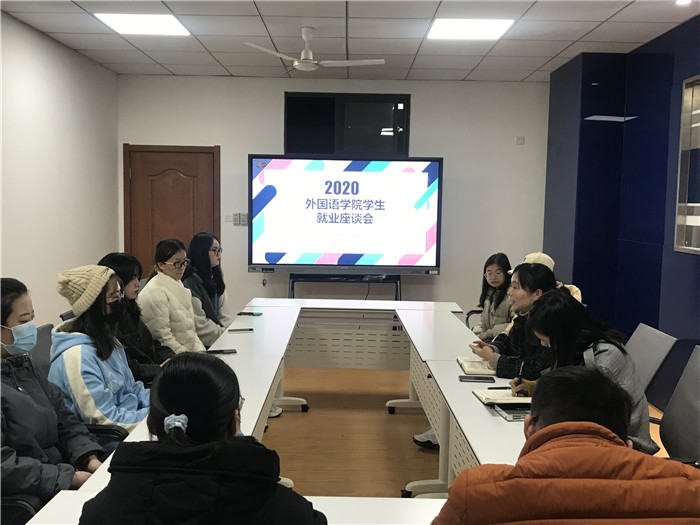 为推进就业工作,12月9日下午,太阳成集团122ccvip在逸夫楼综合楼5406会议室召开了毕业生就业座谈会,2017级英语、日语专业各班员工代表参会,会议由公司党委副书记张文静主持。