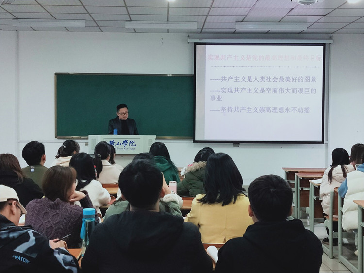 11月25日下午, 太阳成集团122ccvip教工第一党支部书记郭飞在逸夫综合楼5505教室为54期入党积极分子作题为“党的纲领和基本路线”专题党课。
