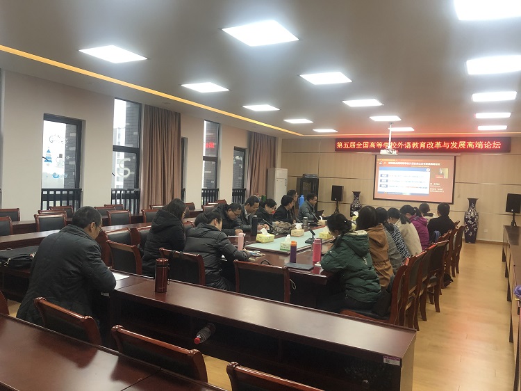 2021年3月20日上午,第五届全国高等公司外语教育改革与发展高端论坛在北京及线上同步开幕。本届论坛主题为“铸教、铸人、铸魂”。公司党政领导班子成员和各教研室教师代表在5402会议室聆听论坛主旨报告。