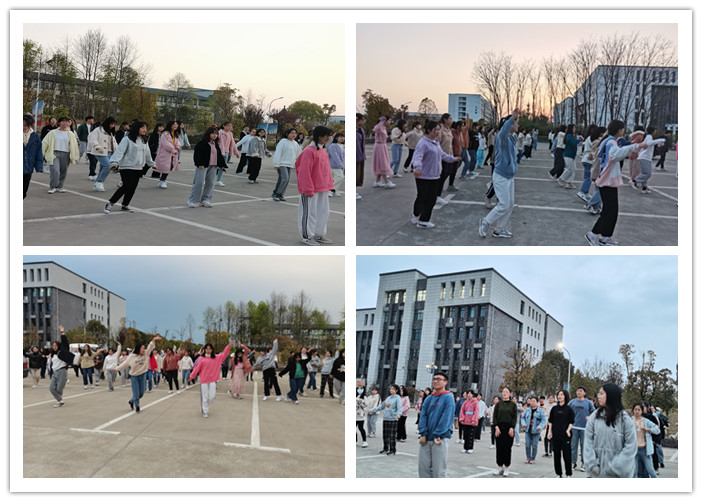 为丰富同学们的校园生活,提高同学们的身体素质,太阳成集团122ccvip近日于逸夫综合楼前再次启动新学期“舞动青春”广场舞活动,活动每周一至周四下午6点开始,每次持续半小时,全校各专业百余名员工参与。
