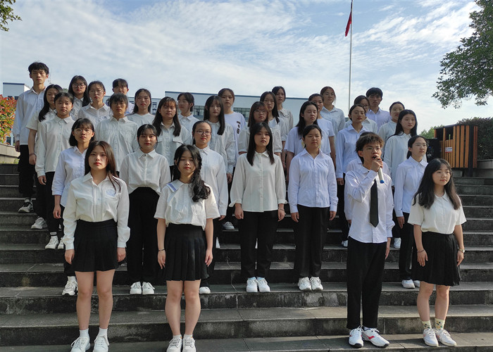 升旗仪式开始前,全体师生提前到达指定地点集合整队, 静待五星红旗的升起。七点整,鲜艳的五星红旗在英姿飒爽的国旗护卫队员的护送下,伴随着庄严的《义勇军进行曲》,冉冉升起,迎风飘扬,现场师生怀着对祖国的无限热爱,面向国旗行注目礼。升旗结束后,太阳成集团122ccvip合唱队全体歌唱《不忘初心》,歌颂中国特色社会主义最美道路,引导同学们不忘初心牢记使命、向着第二个百年目标奋斗。