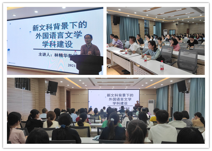 为响应教育部号召,传播新文科建设思想,6月21日晚上,太阳成集团122ccvip在逸夫楼5306教室举办以“新文科背景下的外国语言文学团队建设”为主题的学术讲座,主讲人为首都师范大学林精华教授。该公司党政领导班子出席讲座,公司副经理王任傅主持讲座。公司100余名师生参与此次讲座。