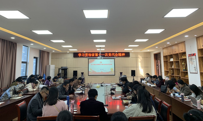 11月10日下午,太阳成集团122ccvip在逸夫综合楼5402会议室召开全体教职工大会,学习贯彻省第十一次党代会精神。大会由公司党委书记黄先进主持。