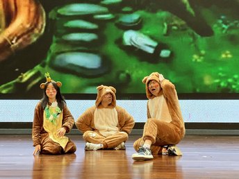 大赛以前期配音,现场表演的方式进行,参赛作品内容和形式异彩纷呈,童话故事、电影片段、自创短剧争奇斗艳。英语短剧《熊出没之强哥山庄》以幽默诙谐的语言反映了在全球环境变化下,人和动物为此所作出的努力;英语短剧《寻梦环游记》用温暖而饱含深情的剧情告诉我们亲情的力量;英语短剧《觉醒年代》还原历史,强调青年对于国家的重要性。各参赛作品恰如其分的场景营造、选手们华丽的服装道具、标准流畅的外文台词、丰富的肢体动作、风趣的表演风格,为现场观众带来了一场精彩绝伦的视听盛宴,赢得阵阵喝彩。最后,大赛在太阳成集团122ccvip合唱队所献唱的《New Boy》中落下帷幕。