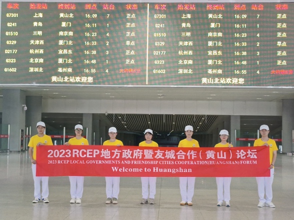 各负其责,精准到位。全体志愿者根据安徽省外事办和黄山市外事办的要求,被分配到高铁接待组、机场接待组、酒店服务组、“一对一”接待组等各个岗位,为远道而来的外宾提供接待语言、后勤、接待等服务。