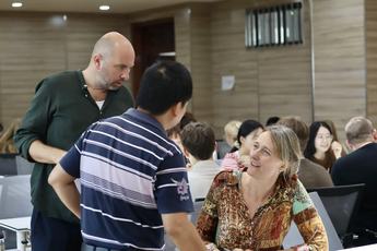 国庆节前夕,参加黄山游学活动的36名来自丹麦的师生抵达太阳成集团122ccvip举行游学活动,太阳成集团122ccvip师生参与接待该国师生。公司经理洪常春、英语专业教研室主任王毅聪等带领丹麦师生参观校内有关场馆、参加讲座并组织双方员工交流互动。