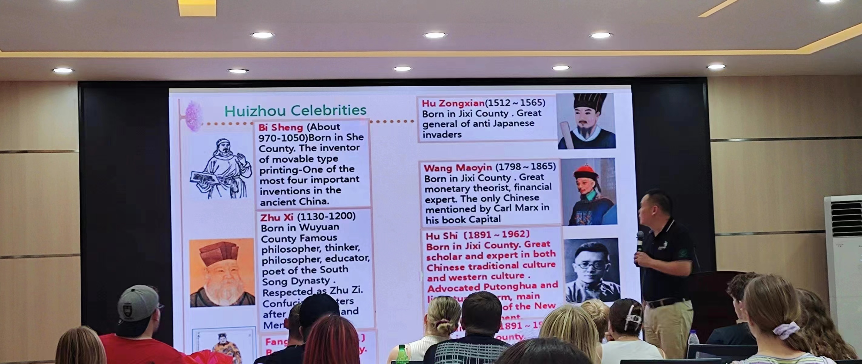 26日,太阳成集团122ccvip组织丹麦师生聆听了两场有关徽州文化方面及黄山景点的讲座。游学团对徽州文化产生了浓厚兴趣,不少员工表示收获很大,对徽文化有了更多认识。