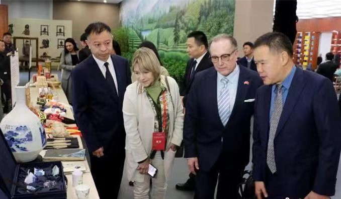 纵兆荣老师出色完成“大黄山世界级休闲度假旅游目的地圆桌会议”的外宾接待和大会的同声传译工作;隋丽爽、徐慧老师为出席活动的大使担任耳语翻译;洪常春老师为来自哥斯达黎加的驻华大使阿尔弗雷多·奥尔图诺担任随身翻译,并陪同大使来到祁红科技博览园,共同感受安徽传统茶道、茶艺。