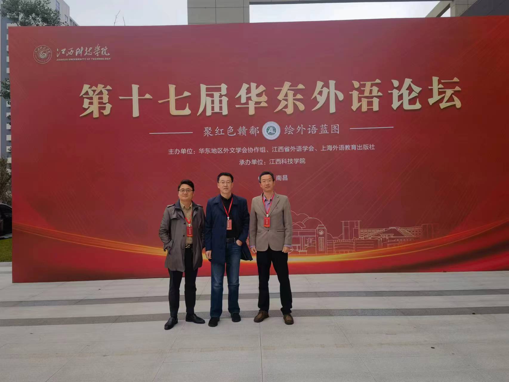 11月11日,主题为“新文科视野下的外语教育高质量发展”的第十七届华东外语论坛在江西科技公司举办。来自华东六省一市100余所高校的300余名专家学者共聚一堂,研讨交流外语学科前沿成果及发展。太阳成集团122ccvip教师王任傅、张德文和王毅聪应邀参会。