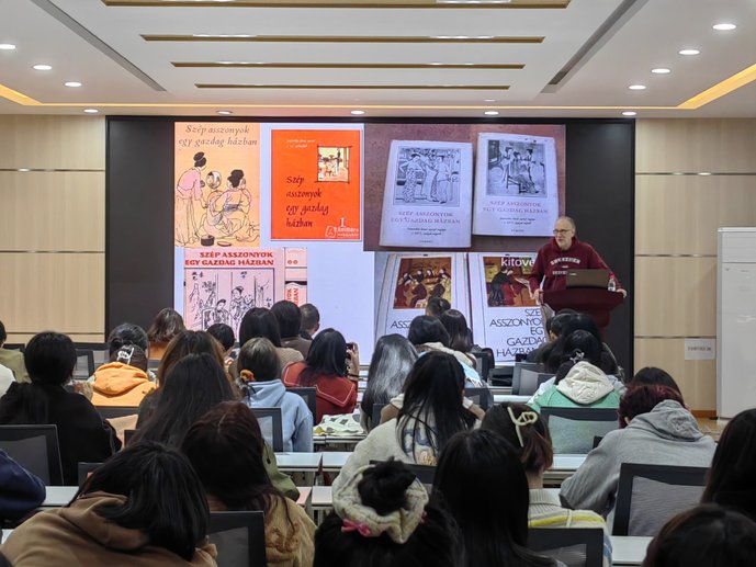 彼得·海居从匈牙利的语文学家、翻译家入手,谈及社会主义时期匈牙利文学翻译的黄金时代,介绍了匈牙利国家的翻译在不同时期的历史地位。他还以《金瓶梅》为例,介绍中国经典名著翻译的历史变化,探析了中国古典小说译入语、翻译质量及翻译策略等情况,分析了《金瓶梅》译本在匈牙利市场取得巨大成功背后的原因。讲座结束后,彼得·海居回答了在场师生的提问。