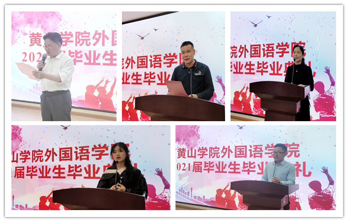 洪常春宣读了2021届优秀毕业生名单。毕业生代表卢琪发言,她深情地回忆了大学四年的点滴,并对母校、恩师和同学表达感谢。教师代表郭飞寄语毕业生,勉励他们保留对生活最大的热爱,爱生命、爱祖国、爱家庭、爱自然、爱阅读,保留年轻人的赤诚与斗志。随后,伴随着《再见》的旋律,专业教师为全体毕业生逐一颁发毕业纪念品。