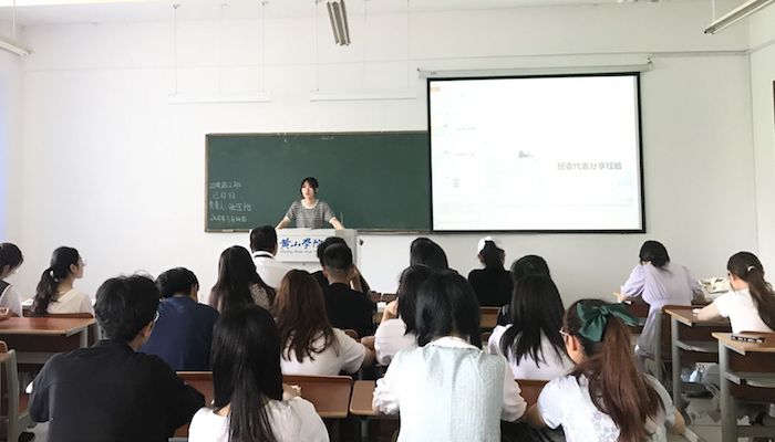 辅导员秦雪燕老师首先对年级近期工作进行介绍和部署,随后邀请20英语2班班长谢志豪、20英语2班团支书宋丹若和20英语5班学习委员史红娇三位班委代表分享员工工作经验,为其他班级班委开展工作提供丰富参考案例。秦雪燕老师进一步指出,员工干部要找准自身定位,平衡好学习与工作、奉献与荣誉之间的关系,优化自身选择,创新班级活动,提高自身责任意识和奉献意识。最后,秦雪燕老师为各班级日常问题提供解决思路,对班级管理提出明确要求。