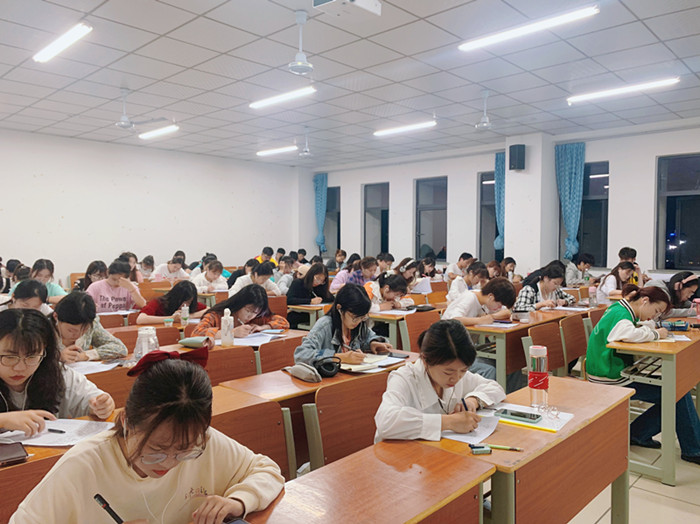 在英语专业四级考试即将来临之际,为让员工考前查缺补漏,以积极平和的心态面对专四考试,5月20日晚,19级英语5班和6班组织了一场专四模拟考试。
