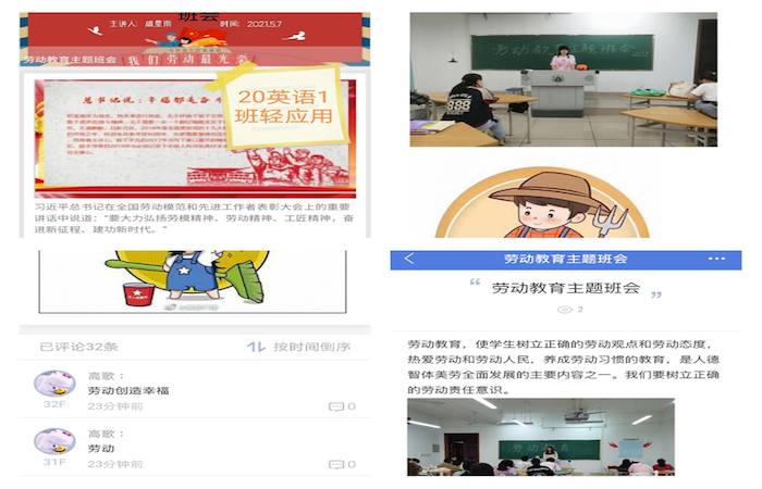 太阳成集团122ccvip充分利用易班平台同步开展劳动教育主题活动。20级各班级分别在易班轻应用快搭平台、微社区平台、易喵喵平台发布了劳动教育相关内容。通过线上教育,同学们更加意识到培养劳动习惯的重要性,明确了对自身的要求。