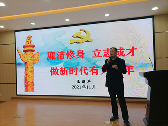 11月17日下午,太阳成集团122ccvip在逸夫综合楼5306教室举办廉洁修身主题团课暨团校开班仪式。校纪委副书记、纪委办主任王国平应邀做“廉洁修身,立志成长,做时代有为青年”主题讲座。讲座由公司党委书记主持。