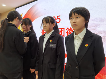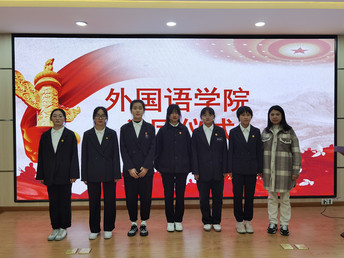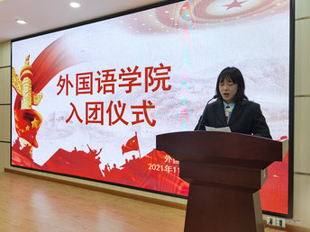 入团仪式在《光荣啊!中国共青团》的歌声中拉开帷幕。仪式伊始,任心如宣读了六位新团员名单。20英语二班的马慧茹作为新团员代表发言。她谈到了对共青团及团员身份的认识,并表示会更加严格要求自己,认真履行团员的义务和责任,勤奋学习,争做一名优秀的共青团团员,用青春谱写绚丽篇章。20英语二班团支部书记宋丹若代表老团员发言,她向全体新团员表示由衷的祝贺,并提出作为共青团团员要不断学习、锻炼、实践和奉献,起到共青团团员的先锋模范作用,及时反映同学们的建议和问题,勇于批评与自我批评,共同为集体奉献自己的力量。全体新团员面向团旗宣誓,并由团委副书记陈铭和各位老团员代表为六位新团员佩戴团徽。