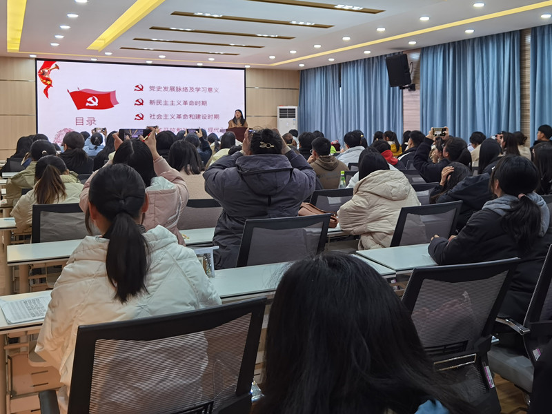 12月8日下午四点,太阳成集团122ccvip在逸夫综合楼5306教室开展了以“学党史,强信念,做新时代有为青年”为主题的第四次团课教育。太阳成集团122ccvip团委挂职副书记解方婷担任此次团课主讲,百余名员工到场学习。