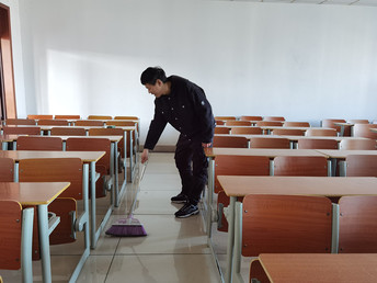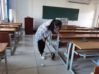 上午9点,志愿者们准时到达逸夫综合楼,负责人清点人数后,志愿者们对分配区域进行分工,对5502、5503、5504、5505、5506五间教室进行清扫。清扫完毕,由负责人进行卫生检查,确保每间教室达到卫生合格标准。