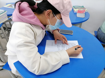 会议开始,刘丹妮向参与者简单说明了召开同心抗疫宣讲会的目的,紧接着播放了两个视频,第一个视频详细介绍了新冠病毒的产生以及变异,第二个则列举了预防新冠病毒传播的方法及措施。视频播放结束,刘丹妮和高祥婉分发了关于活动视频的知识问卷,大家认真地完成了问卷的填写。