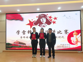 比赛最后,主持人宣读获奖名单:甘文静、汪永梦获一等奖;曹明月、焦阳等五人获二等奖;胡一鸣、裴明姬等六人获三等奖。三位评委老师分别为获奖选手颁发荣誉证书并合影留念。