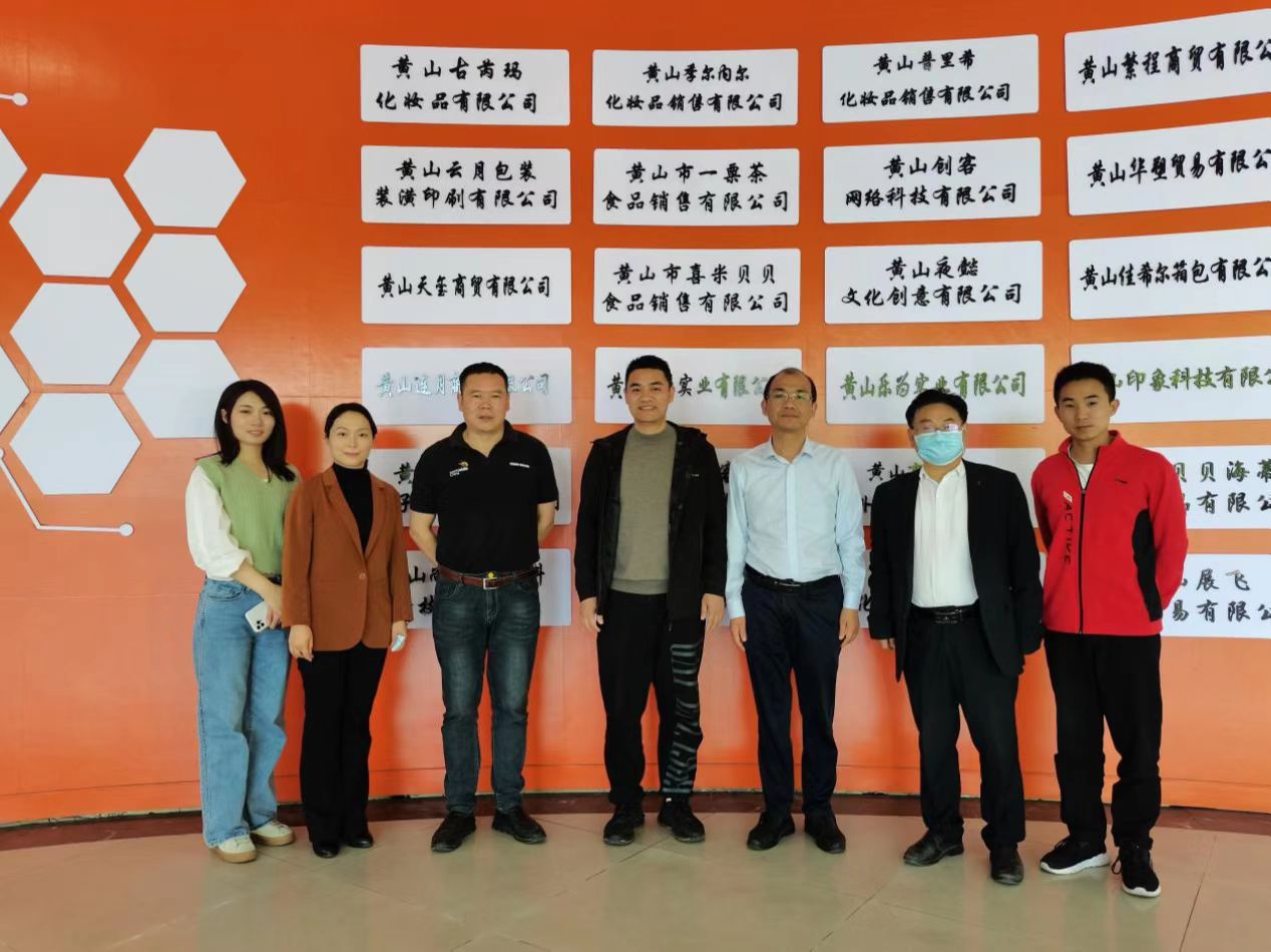 在徽州区跨境电商产业园,访企拓岗组听取公司负责人对员工培养方面的建议,并实地了解公司18级毕业生创业经营情况。公司领导鼓励员工积极创业,将自己的所学专业运用于创业中,鼓励创业的同学在实践中促进成长,增长才干。
