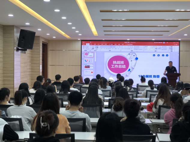 会上,陈蓉、龚为俊从自身的亲身经历出发就商务英语挑战班的建立、外贸工作中遇到的挑战与取得的成绩,以及工作中获得的反思等三个方面与在校生进行分享。两位同学还结合自身在挑战班的创业经历,建议在场同学在就业择业时目光要长远,不要过分局限于传统行业,要充分了解当前市场对英语专业的需求,做好充分准备,鼓励大家勇于创业、敢于尝试。