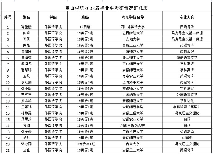 2021届毕业生考研情况汇总表