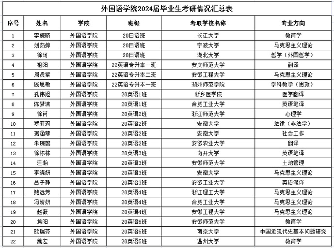 2022届毕业生考研情况汇总表