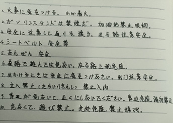 为进一步增强同学们的交通安全法规意识和安全文明意识,教育员工关爱生命、拒绝违章,严防道路事故,打造平安校园,该班此次采用以“安全教育”为主题进行日语单词或句子联想记忆活动。