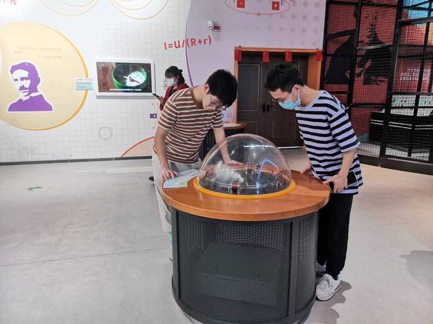 在黄山市科技馆,同学们被丰富多样的科技展品所吸引,迫不及待地投入到观察和探索之中。在光影之绚、运动之律、天籁之音、数学之魅、电磁之奥五个主题展区,员工们积极与展品进行互动体验,领悟探索声光电力磁等常规科学知识。