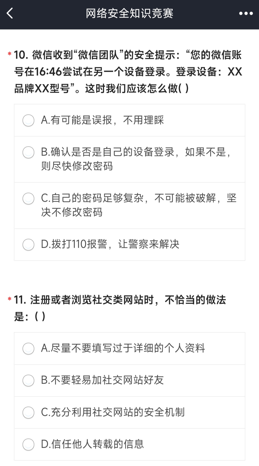 本次活动以线上问卷形式展开,涉及国家网络安全战略构建、国际重大网络安全事件以及网络安全防范措施等内容。同学们踊跃参与,认真作答,检验自身网络安全知识掌握情况。