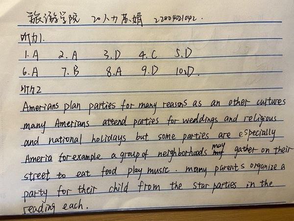 本次活动采取线上活动形式,参赛的同学需提前加入钉钉活动群,13:50工作人员在钉钉活动群中发布活动流程; 14:00发布第一部分听力内容题目;14:05发布第一部分听力材料;14:15发布第二部分听力材料; 14:30发布调查问卷,让同学们将答案拍照上传,即为活动结束。此次活动共收录120余份答卷。在众多参赛人员中,优胜者将会获得老员工英语俱乐部准备的精美礼品。