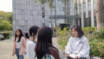 为了帮助同学们较快了解校园地标建筑,选取逸夫综合楼、逸夫图书馆、一食堂等三个代表性建筑,通过寻找“宝藏”(口罩)的方式去熟悉公司。每个口罩上面标有英文字母,将所找到的“字母”口罩组合成一个单词,并于每个点另设三个工作人员,通过英语问答的方式,奖励额外口罩。