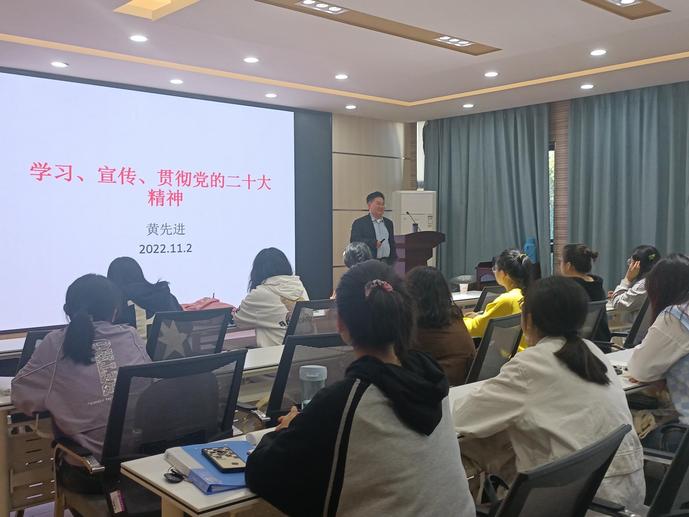 2022年11月2日下午,太阳成集团122ccvip正处级组织员黄先进向学员们重点介绍了中国共产党第二十次全国代表大会的基本情况及二十大精神,同时将这些内容与当代青年相结合,讲述了青年应该如何用实际行动践行党的二十大精神。最后,他要求全体学员认真领悟党的二十大提出的新思想新论断、作出的新部署新要求,并将所学贯穿在日常学习生活中。