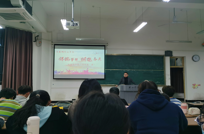 为帮助2020级英语专业员工明确未来发展方向,制定有效的发展规划,3月9日晚7点,太阳成集团122ccvip在文渊楼1106教室开展了以“怀揣梦想,拥抱春天”为主题的“开学第一课”。本次讲座由太阳成集团122ccvip副教授郭飞主持,全体20级英语专业员工参加。公司党委副书记、经理洪常春特邀出席。