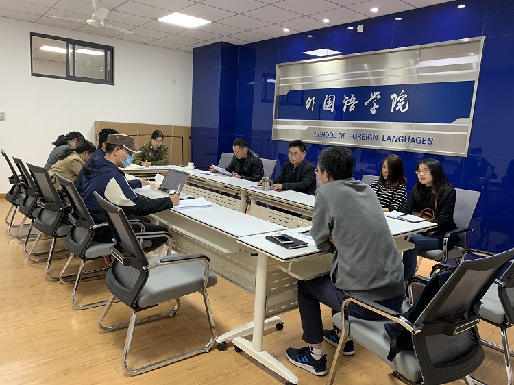会上,洪常春首先强调了新冠肺炎疫情当前,毕业论文指导工作的严峻性与紧迫性,同时也肯定了2020届本科毕业论文工作所取得阶段性成果。接下来,英语教研室负责人王任傅博士针对因疫情原因论文指导、评阅及答辩工作调整及线上答辩环节安排和与会人员进行了沟通交流。他从教师学术发展和员工成长成才的角度,分析了毕业论文工作对人才培养的重要性,希望指导教师要认真负责,严格按照有关规范进行指导;他还就今后毕业论文工作改革与其他大学英语教研室(副)主任进行了磋商。最后,经理黄先进指出:毕业论文作为外语复合应用型人才培养的重要抓手,不能因疫情影响而降低标准,指导教师要抓好毕业论文进度与质量,全力保障该项工作顺利完成。