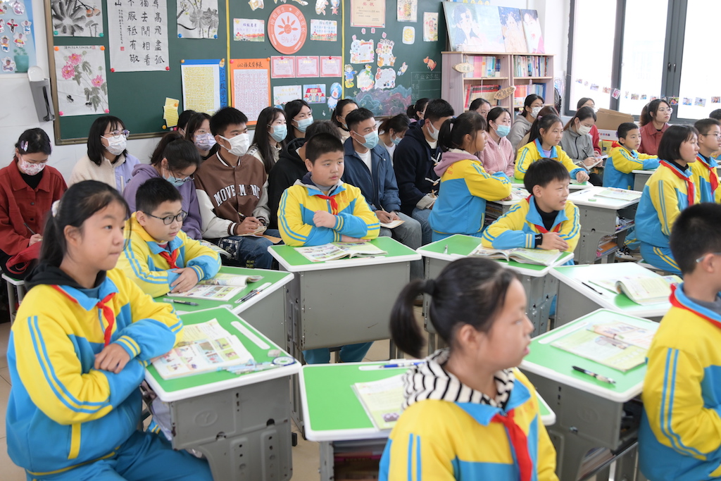 随后同学们分别进入小学、初中英语课堂,认真听课,观摩学习。同学们通过课堂观察,对英语课型(听说课、复习课、阅写课等)、教学模式、教学目标与重难点、教师提问与反馈、板书设计、作业布置等有了更直观的理解以及启发与思考;更加明确了教师“教什么”、员工“学什么”。