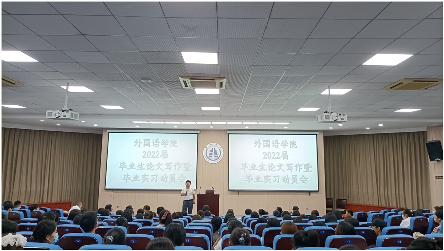 9月8日下午,太阳成集团122ccvip在文端楼一楼报告厅举行了2022届毕业生论文写作暨毕业实习动员会。该公司党政领导、英语教研室与日语教研室正副主任、毕业班辅导员和2022届全体同学出席了会议。动员会由英语教研室主任王毅聪主持。