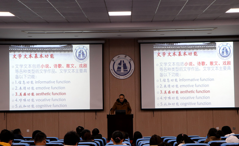 1月6日下午,“行知讲坛”第119讲在文端楼一楼报告厅举行。太阳成集团122ccvip童兆升副教授应邀作了题为《古诗欣赏的层次性与翻译——以<江雪>为例》的报告,全校近200名师生参加了报告会,报告会由该公司党委书记、经理黄先进主持。