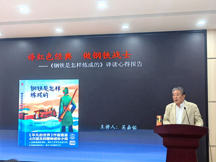 报告会上,吴嘉佑分享了自己与红色经典《钢铁是怎样炼成的》的渊源,通过翻译经典、阐释经典、走进经典,感悟“保尔精神”,锤炼意志品质。他激励员工以保尔为榜样,学习其钢铁般的生命意志、永不言败的奋斗精神和追求大无畏的献身精神,勇敢克服困难,不断前行。